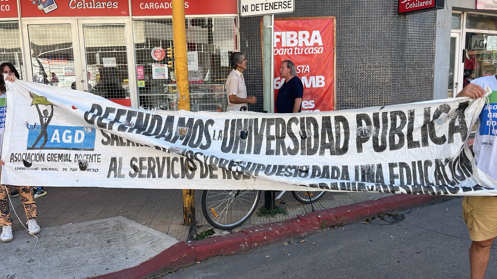 La Asociación Gremial Docente desarrolló durante la mañana de este martes una volanteada a transeúntes en el Boulevard Roca para mostrar y concientizar la delicada situación económica que atraviesa la UNRC y la situación salarial de los docentes universitarios.